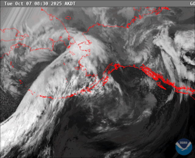 The Yukon Delta coast remains under a flood warning and high wind advisory as a large storm moves up the coast of Western Alaska. To the south, the Kuskokwim Delta coast is under a flood advisory.