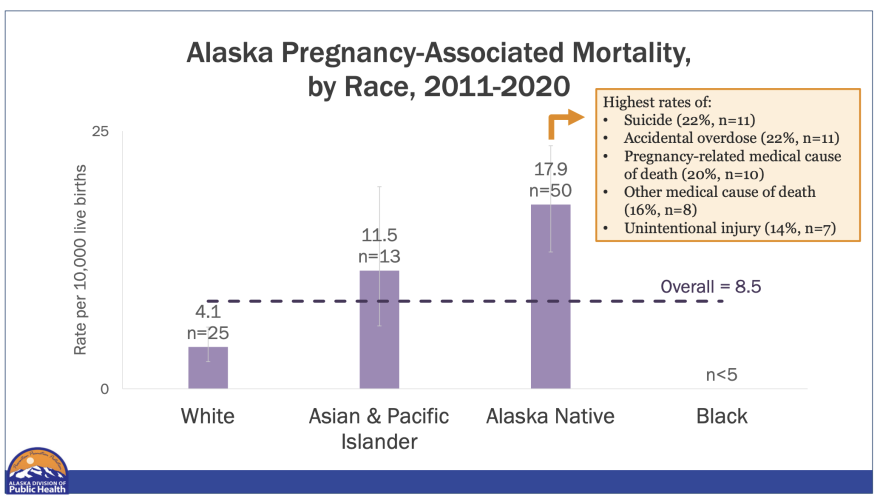 More mothers die in, or right after, childbirth in the United States than any other developed country, and that number is growing. Alaska has a lower rate than the national average, but still sees 6 to 13 maternal deaths each year, according to the Alaska Maternal Child Death Review Committee. Rates are highest among Indigenous mothers in Southwestern Alaska.